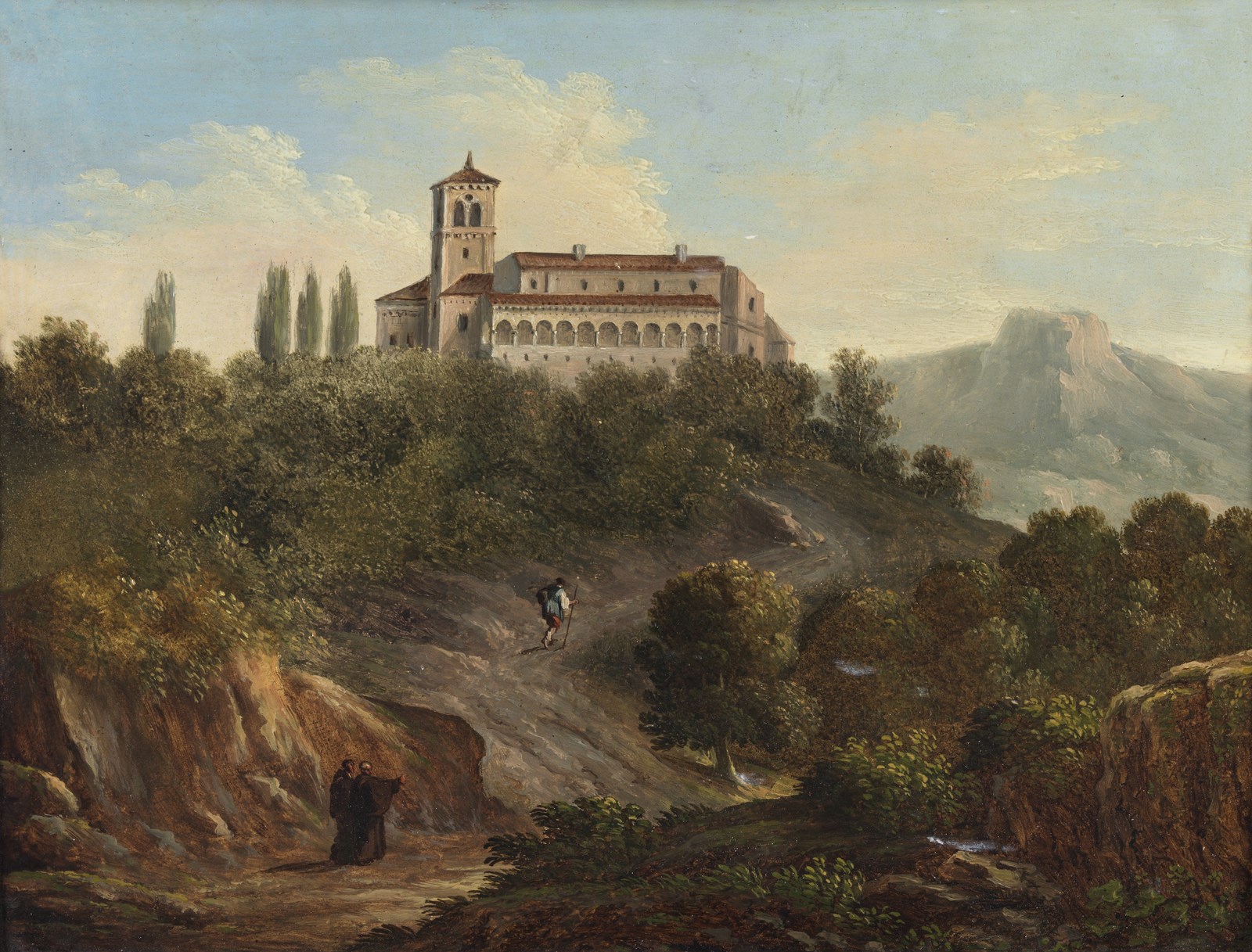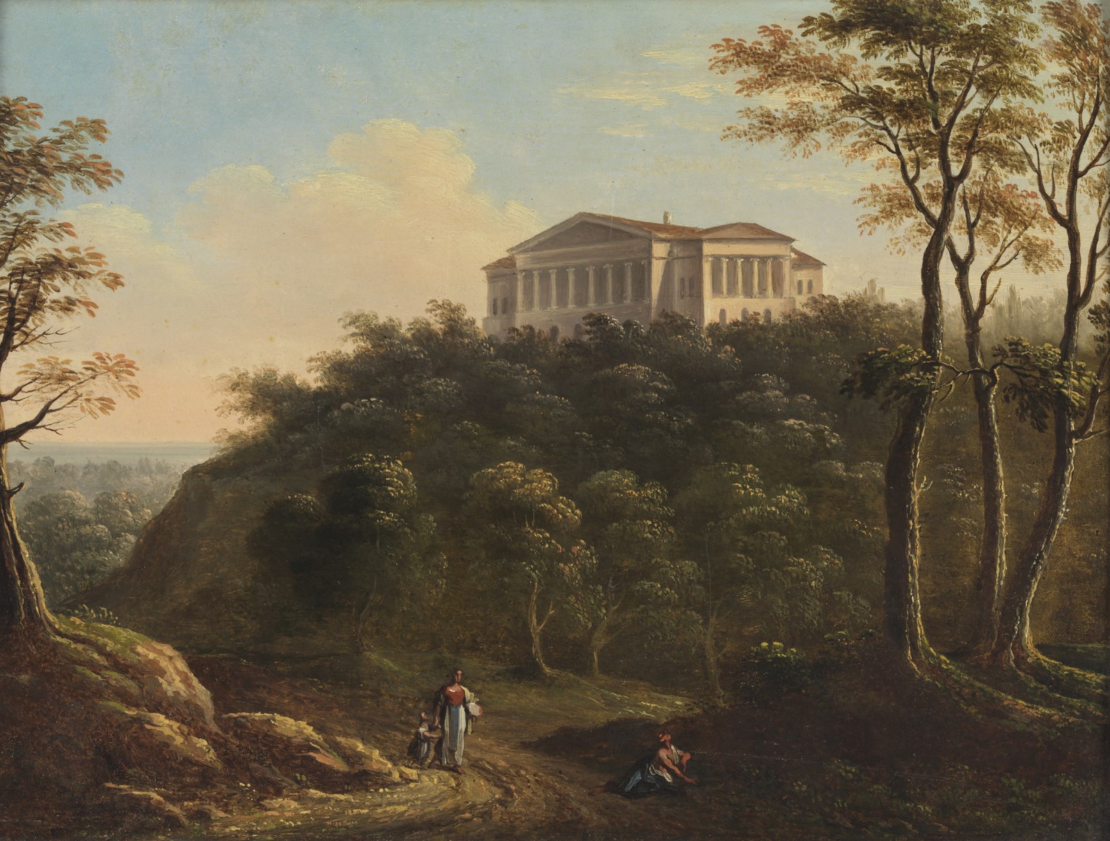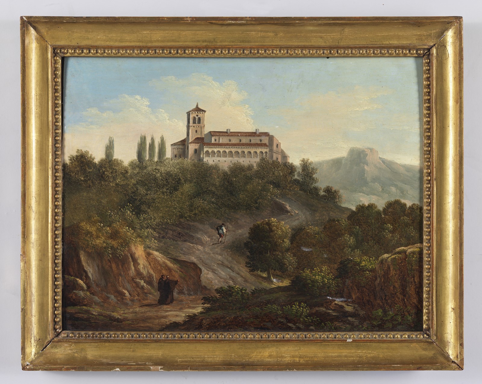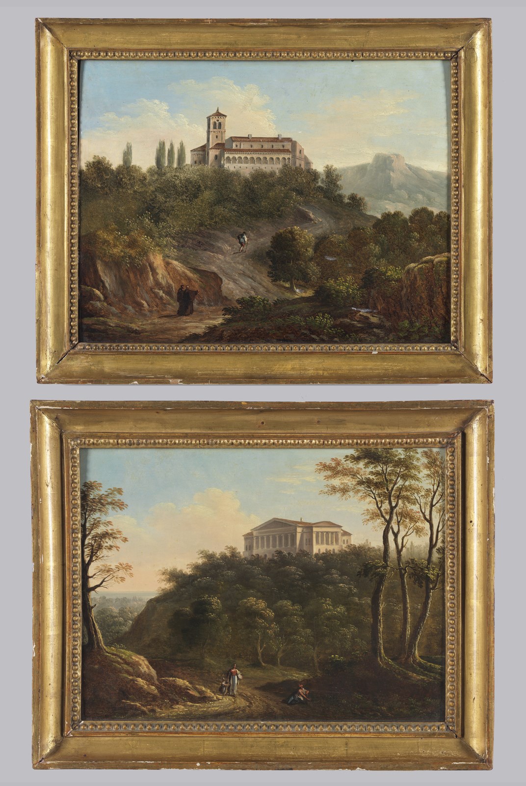 BARBIERI GIOVANNI (1780 - 1864) - Coppia di dipinti raffiguranti veduta di Villa Aldini e veduta dell'Abbazia di Monteveglio. .