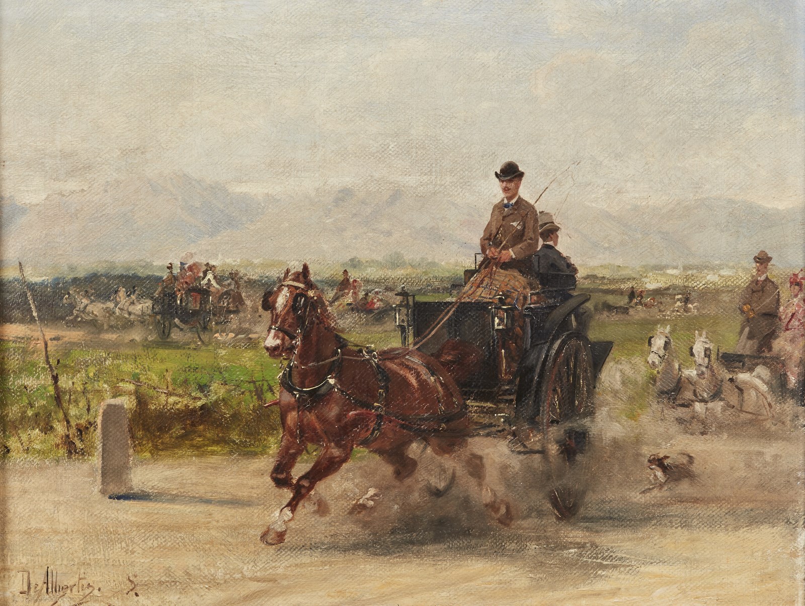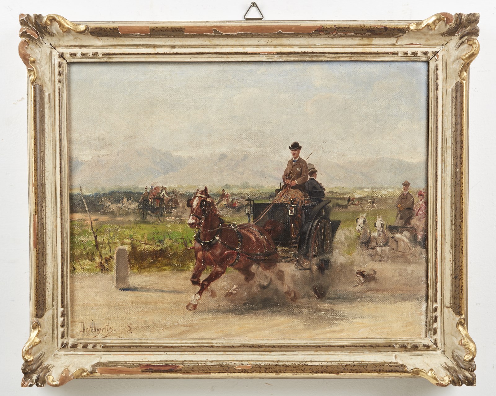 DE ALBERTIS SEBASTIANO (1828 - 1897) Paesaggio con personaggi. . Olio su tela . Cm 43,50 x 33,50. Firmato in basso a sinistra. Cornice presente