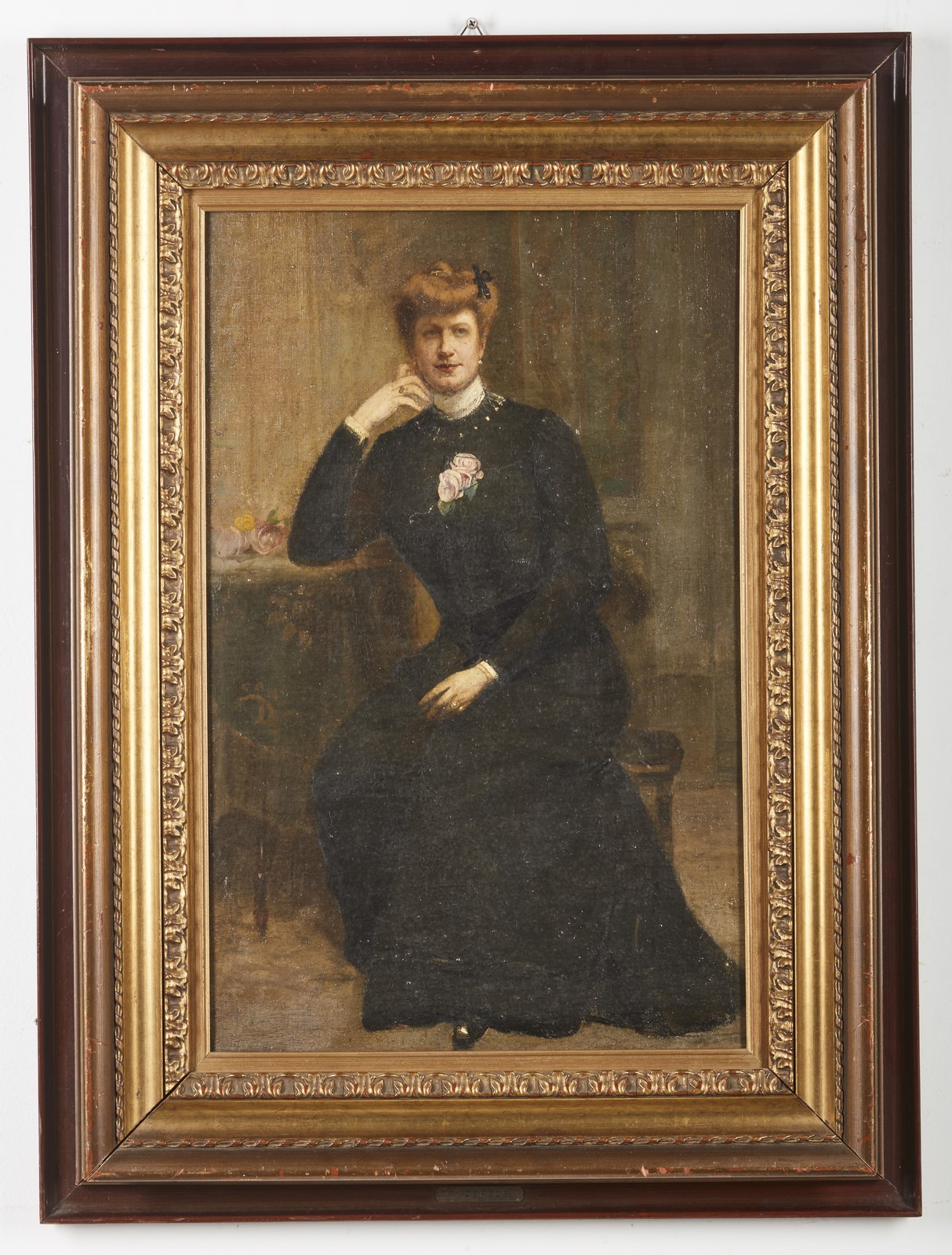 CORCOS VITTORIO MATTEO (1859 - 1933) Ambito di. Ritratto della Principessa di Gianco. Olio su tela . Cm 38,50 x 58,00. Tracce di firma in basso a sinistra. . Cornice presente