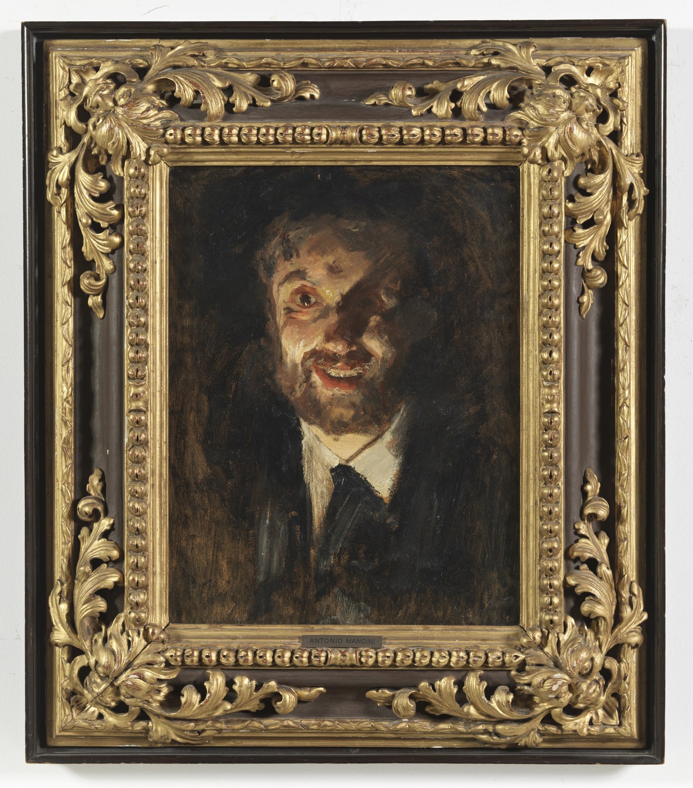 MANCINI ANTONIO (1852 - 1930) Autoritratto. . Olio su cartone. Cm 38,00 x 48,00. L'opera è accompagnata da autentica su fotografia a cura di Emilio Zanzi, Genova, 2 ottobre 1953.