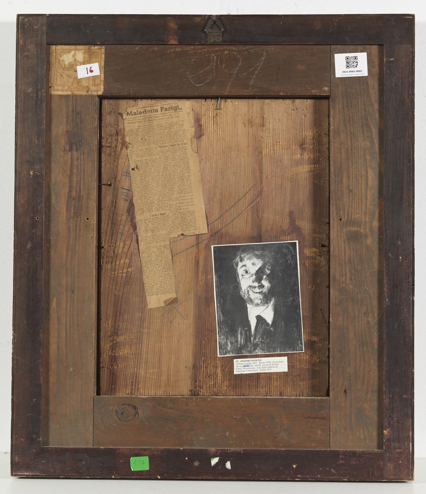 Bibliografia: Cinzia Virno, Antonio Mancini. Catalogo Ragionato dell'opera. La pittura a olio, De Luca Editore, 2019, p. 218, fig. 276. . Cornice presente