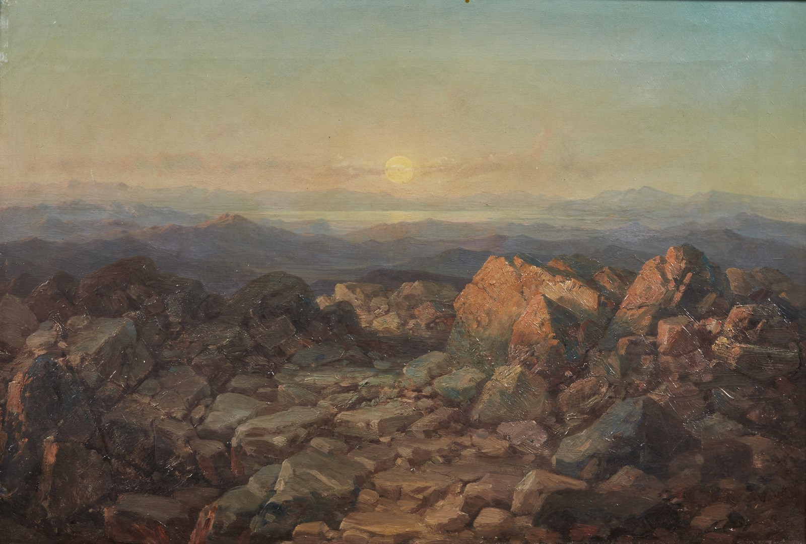 ARTISTA DEL XIX SECOLO Lago di Scutari. . Olio su tela . Cm 45,50 x 30,50. . Cornice presente