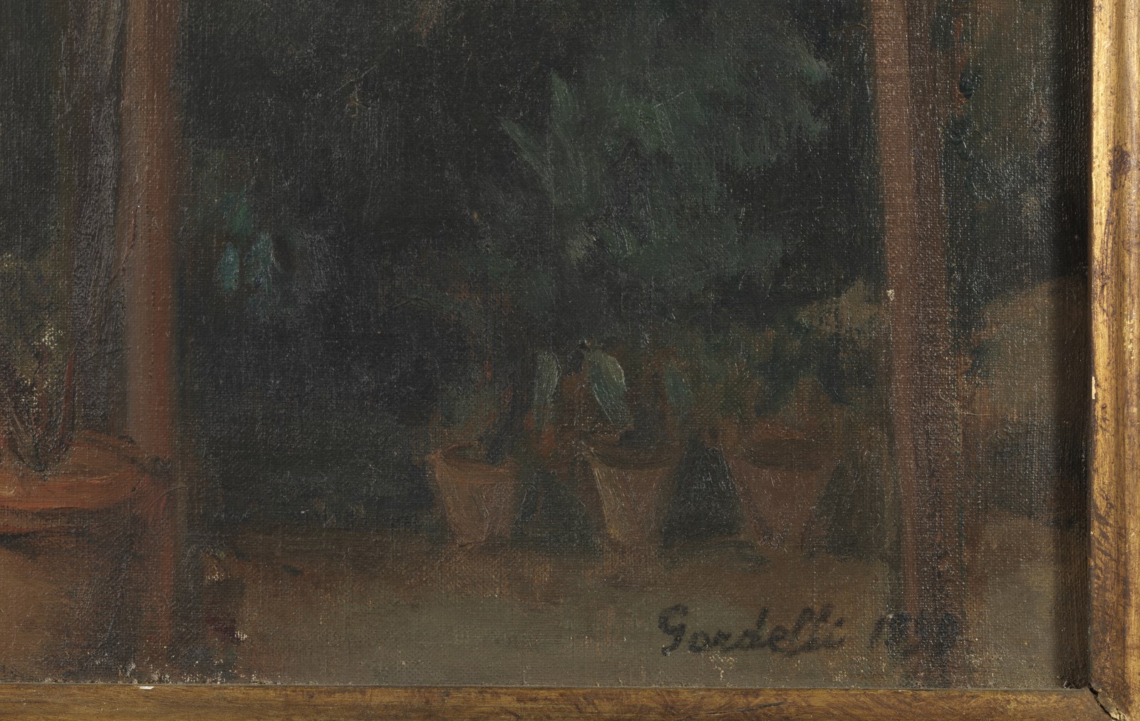 GARDELLI AUGUSTO (1886 - 1968) Paesaggio con casa. Olio su tela . Cm 66,00 x 82,00. Firmato e datato 1898 in basso a destra. . Cornice presente