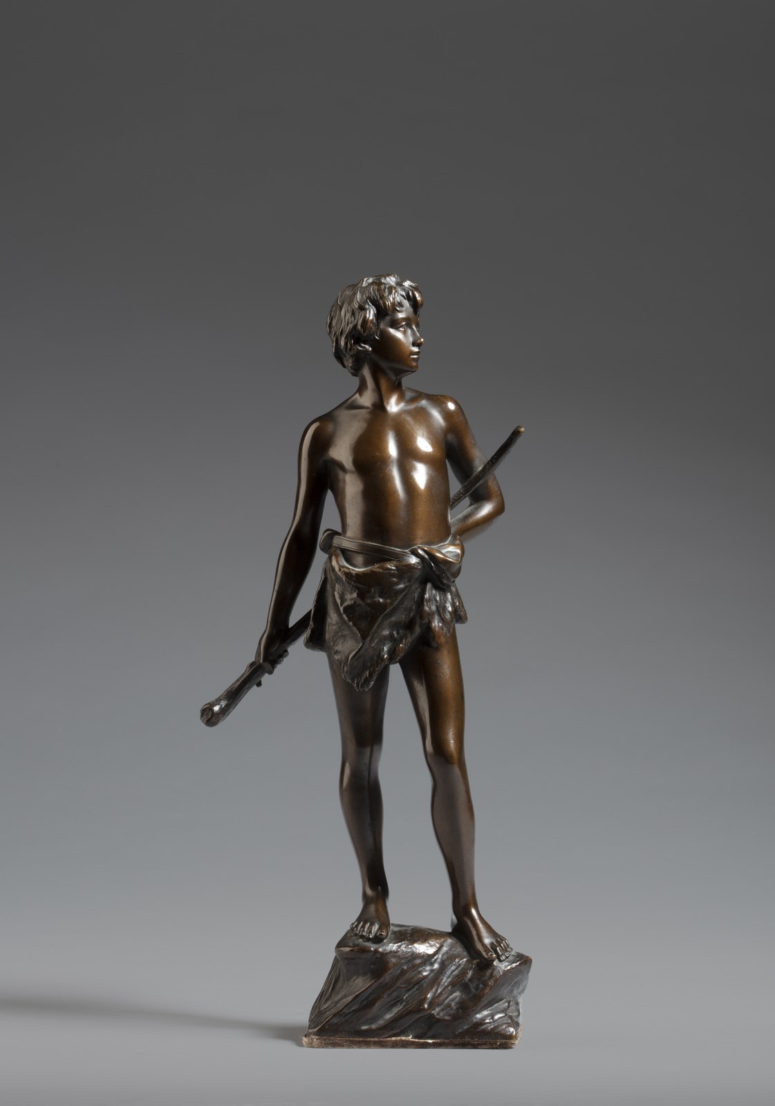 CHRISTENSEN JEREMIAS (1859 - 1908) Pastorello. bronzo a patina bruna. Cm 8,00 x 30,00 x 5,50. Firmato al retro e probabile marchio di fonderia "Oskar Gladenbeck Gmbh".