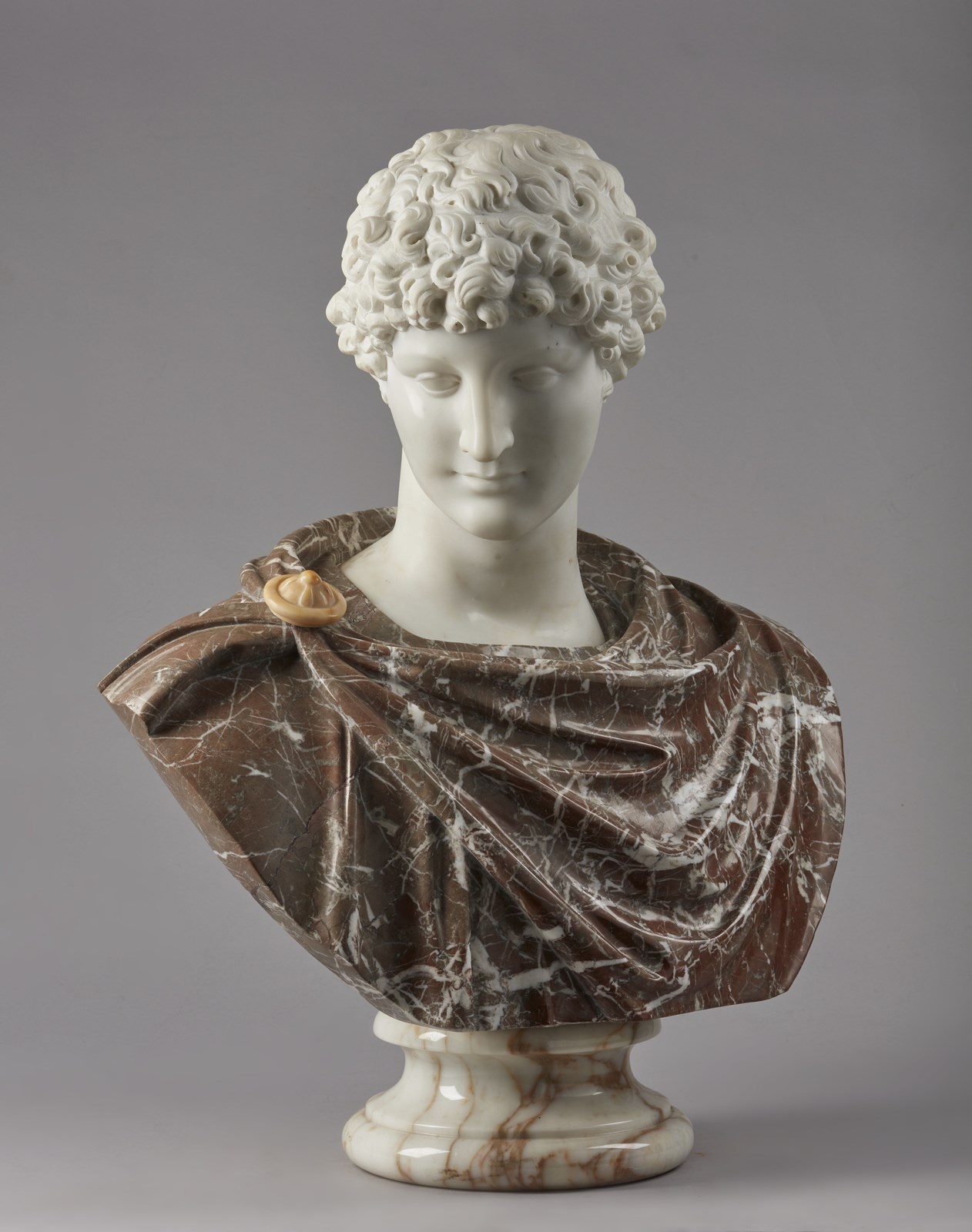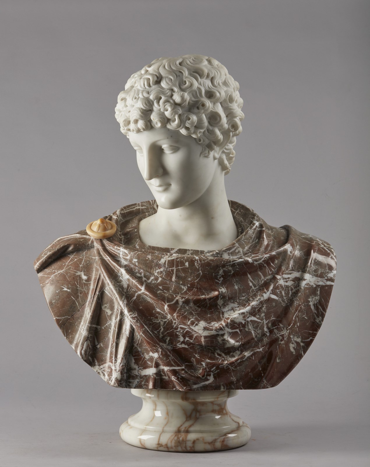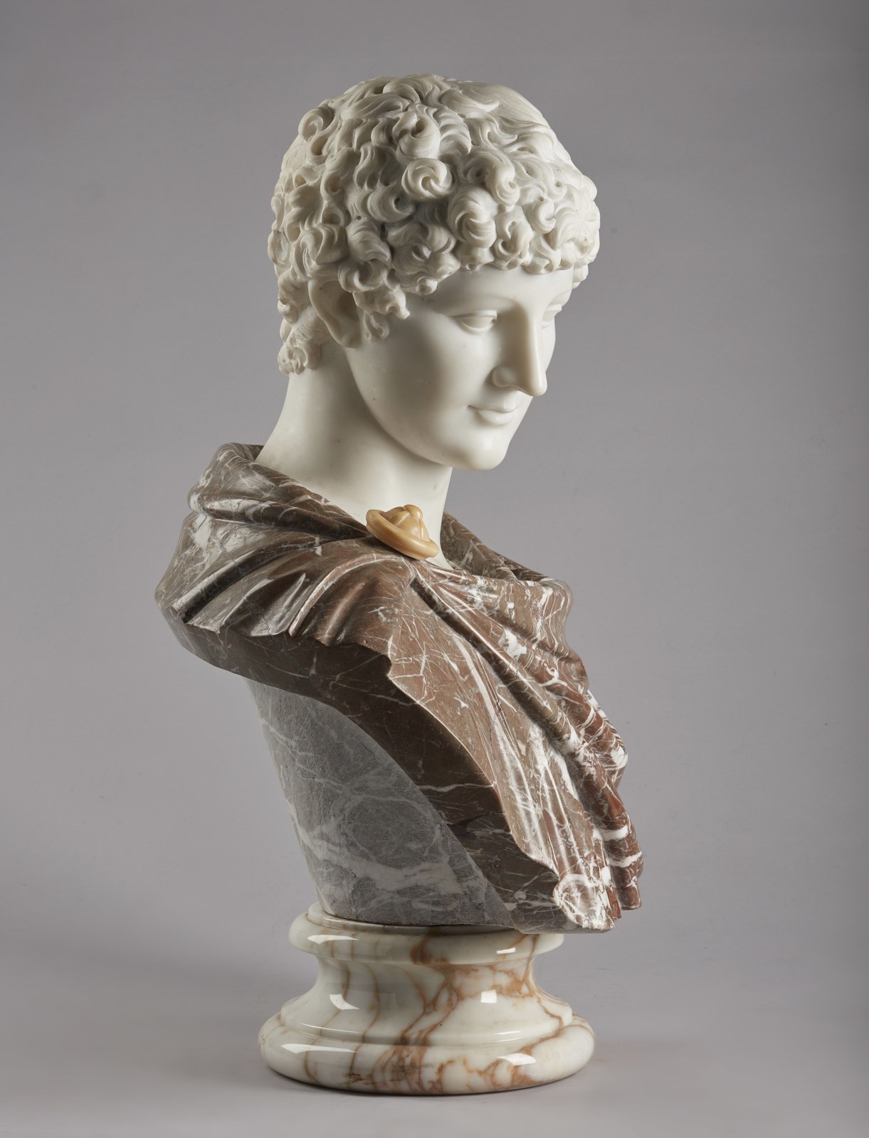 SCULTORE ITALIANO DEL XIX-XX SECOLO - Busto di giovane dall'antico, probabilmente Antinoo.