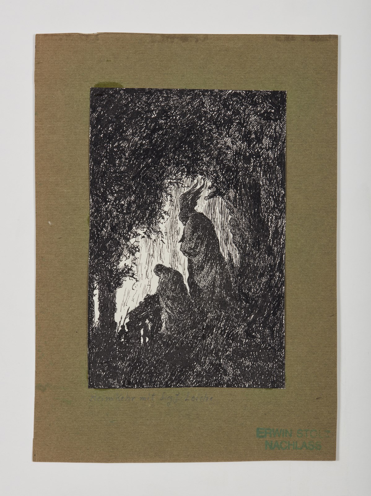 STOLTZ ERWIN (1896 - 1987) Il ritorno del corpo di Sigfrido. Penna e inchiostro su carta. Cm 10,50 x 16,00. Timbro dell'artista apposto sul passpartout.