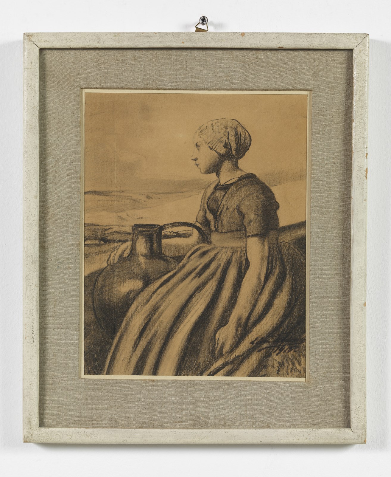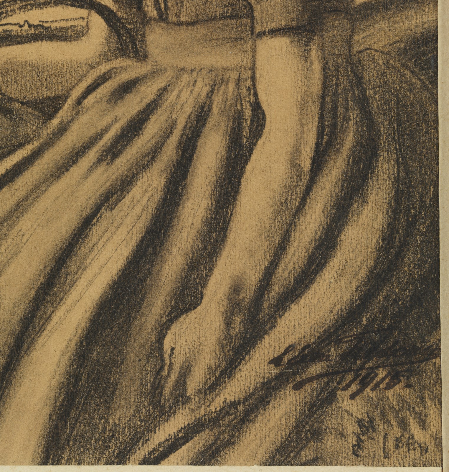 FRÉDÉRIC LÉON (1856 - 1940) Petit Hollandaise. Carboncino nero su carta. Cm 20,50 x 26,00. . Cornice presente