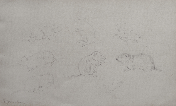 Guglielmo Micheli (Livorno, 1862 - 1926) TOPI Matita su carta, cm. 17x26 Firma in basso a sinistra.