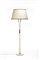 Lampada da terra con fusto sagomato a Y. Milano, anni '40. Legno verniciato bianco, ottone, base lenticolare in marmo statuario di Carrara, paralume in stoffa. (h cm 170) (lievi difetti)