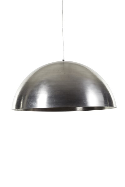 Experimental prototype of the "Sonora" suspension lamp. Execution by Krupp, Germany, 1970ca. Large hemispherical cap in heavy calendered steel. (d 101 cm.) (slight defects)