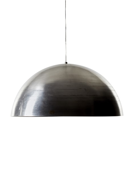 Prototipo sperimentale della lampada a sospensione "Sonora". Esecuzione Krupp, Germania, 1970ca. Grande calotta emisferica in acciaio pesante calandrato. (d cm 101) (lievi difetti)