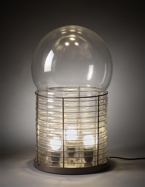 Lampada da tavolo modello "Alcinoo". Produzione Artemide, Milano, 1975. Vetro soffiato in un'armatura metallica. (h cm 60)