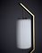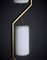 Lampada da terra. Produzione Arredoluce, Monza, 1959ca. Base in marmo bianco, struttura in ottone, diffusori in vetro duplex opal bianco. (h cm 190)