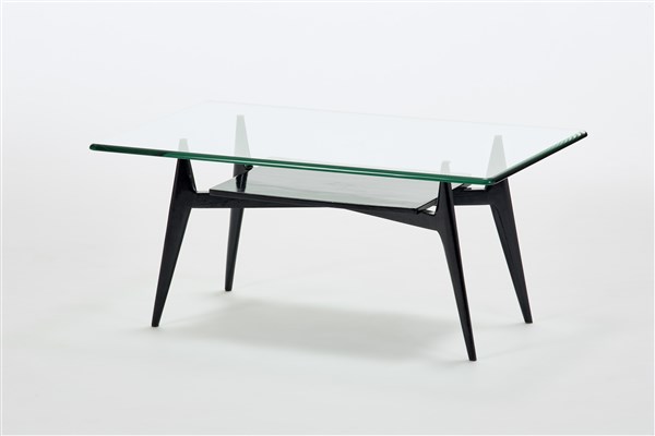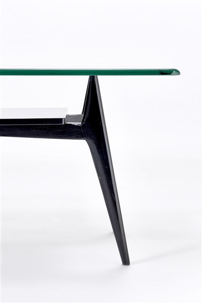 Gio Ponti Tavolino in legno laccato nero con due piani in cristallo. Montanti af