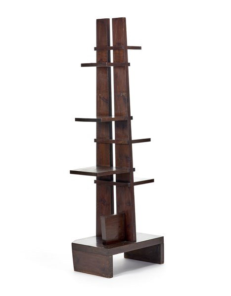 Espositore in legno realizzato per la sala Cappellin alla IV Triennale di Monza, 1930. Legno massello. (cm 60x181x42) (lievi difetti, piccoli restauri e mancanze)