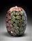 Large ovoid vase with truncated cone collar. Execution by Livio Serena e Giacomo Barbini, Murano, 2002. Blown glass with a complex vitreous texture in superimposed layers. Body in transparent blue, green and amethyst glass with inserts of powders on a background with small polychrome scales, top part with canes with square lattimo murrine on a red background and inserts of powders. Rim in red opaque glass. Unique piece. Signed and dated under the base "Yoichi Ohira, m° L. Serena, m° G. Barbini, Wednesday, 30-10-2002, Murano", monogram of the artist. (h 28.5 cm.)