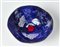 Ciotola in ceramica smaltata in blu e rosso. 1955ca. Firmata sotto la base con sette punti. (h cm 11; d cm 24,5) (restauro non professionale)