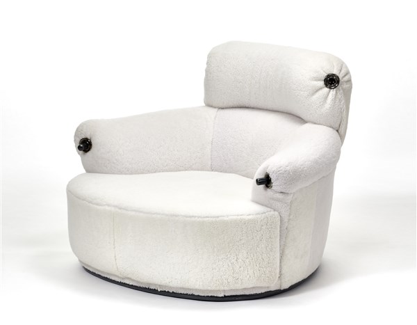 Poltrona modello "P20 Toro". Produzione Azucena, Milano, disegno del 1973. Tondino di ferro verniciato e rivestimento in pelo di montone rasato. (cm 115x78x100) (lievi difetti)