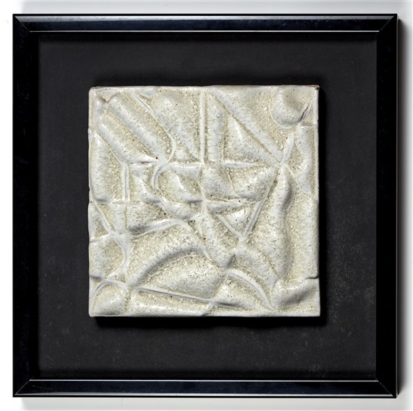 Formella in grès smaltato in “Bianco Zauli”. Faenza, fine anni '80. Firmata sul lato. (cm 26x26)