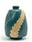 Vaso modello "7418". Esecuzione Richard-Ginori S. Cristoforo, Milano, anni '30. Ceramica formata a colaggio smaltata in verde e beige con costolature e foglie d'acanto a rilievo ritorte. Marcato sotto la base in verde "Richard Ginori Fabbr. in Italia" con il simbolo grafico della manifattura, con i numerali 9-47-10 e incusso 7418. (h cm 30) (lievi difetti)