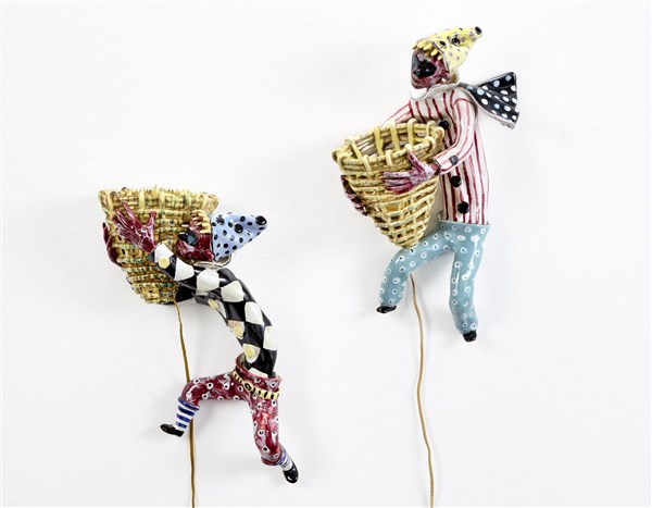 Otello Rosa Due lampade-scultura da parete in ceramica policroma. Esecuzione San