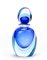 Bottiglia porta profumo con tappo in vetro sommerso trasparente incolore, azzurro, ametista e blu. Murano, anni '50/'60. (h cm 25)