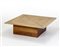 Tavolo da salotto con base in legno massello e piano in travertino filettato in ottone. Italia, anni '70. (cm 140x40,5x140) (lievi difetti)