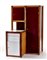 Mobile modulare a due campate. Milano, anni '60/'70. Legno impiallacciato, ante in legno impiallacciato in laminato bordeaux scuro e bianco. Montanti in legno massello fungenti da giunto universale. (cm 129x210x130) (gravi difetti e mancanze)