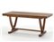 Tavolo in legno di rovere massello, bordato e impiallacciato con parti laterali a bugnatura liscia e gambe curvate incrociate. Italia, anni '30/'40. (cm 187x76x86,5) (difetti e restauri)