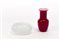 Lotto composto da una coppa in vetro trasparente incolore e con murrine lattimo di Tobia Scarpa per Venini e un vaso a balaustro in vetro soffiato incamiciato bordeaux firmato e numerato a punta sotto la base "De Maio Murano 26722". Murano. (coppa: d cm 14,5; vaso: h cm 15,5)