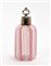 Perfume bottle in clear colorless blown glass with canes of pink zanfirico and lattimo, silver metal cap. Murano, 1950s. Not original box. (h 20 cm.)