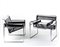 Pair of armchairs model "B3" o "Wassily". Produced by Gavina, San Lazzaro Di Savena, 1970s. Chromed steel tube and black leather. With label and signature. (78x72.5x65 cm.) (slight defects)