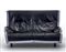 Divano modello "Sindbad". Produzione Cassina, Meda, 1981. Struttura in acciaio, poliuretano espanso e ovatta di poliestere, rivestimento in pelle nera e tessuto azzurro. Recante etichetta della produzione. (cm 162x102x80) (lievi difetti)