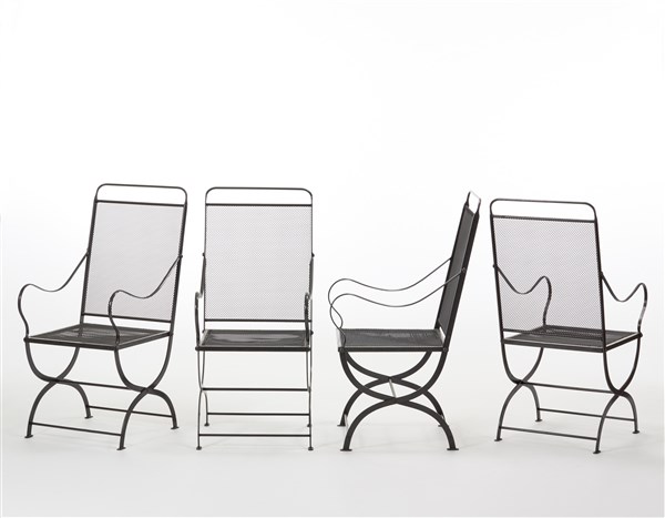 Lotto composto da quattro sedie con braccioli modello "S4 Nonaro con braccioli". Produzione Azucena, Milano, 1959. Ferro grigio metallizzato e rete metallica in filo di ferro zincato. (cm 45x100x65) (lievi difetti)