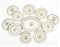 Service part of the series "Velesca". Manufacture of Richard - Ginori, Milan, 1920s. Three crescents, a serving plate, three soup plates, two dinner plates and two saucers in glazed ceramic. Marked under the base and with "Velesca" signature. (slight defects)