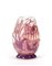 Raro vaso panciuto con corpo a sezione quadrilobata su base, in vetro a cammeo trasparente incolore con decori a rilievo in rosa e viola. Nancy, 1900ca. Firma a cammeo alla giapponese. (h cm 14)