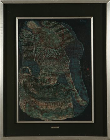VIRGI A. Osiride, dio della morte. 1974. Tempera su tavola. Cm 50,00 x 70,00....
