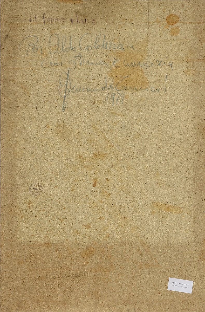 TOMASI ARMANDO (n. 1940) Forme e luce. Olio su tavola. Cm 60,00 x 90,00. Al retro titolo, dedica dell'artista, firma e anno. Firma e data in basso a sinistra.