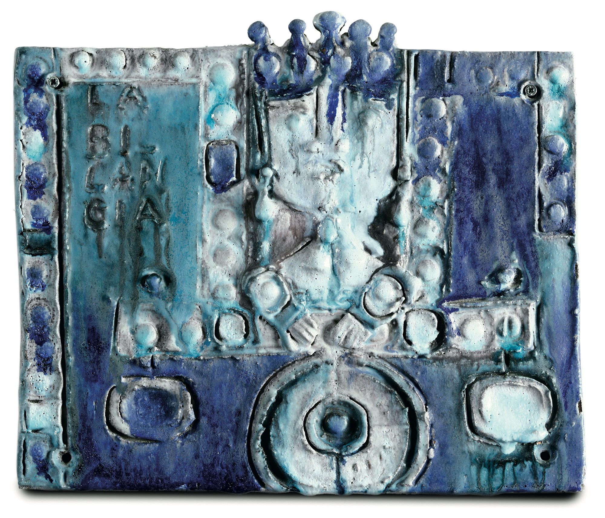 Emanuele Luzzati La bilancia, anni '70 ca ceramica smaltata cm 38x30...