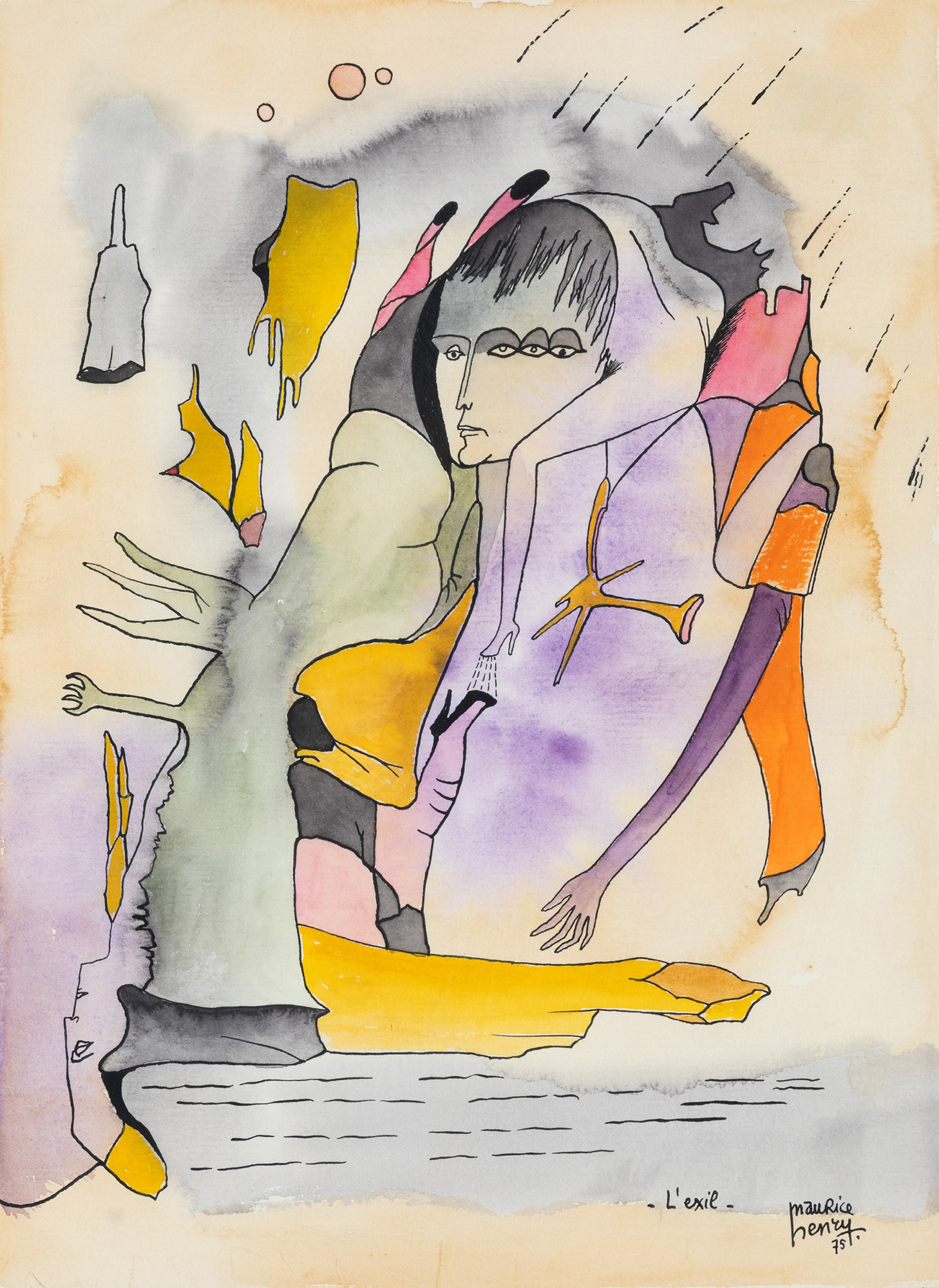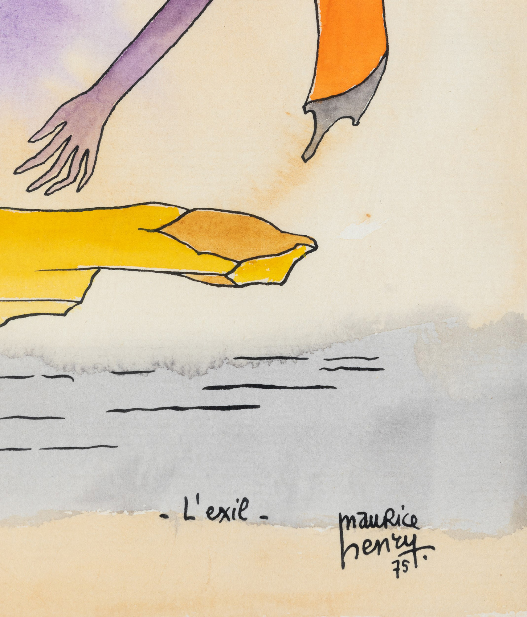 Maurice Henry L’exil, 1975 tecnica mista su carta cm 23,7x32,7 firmato,...