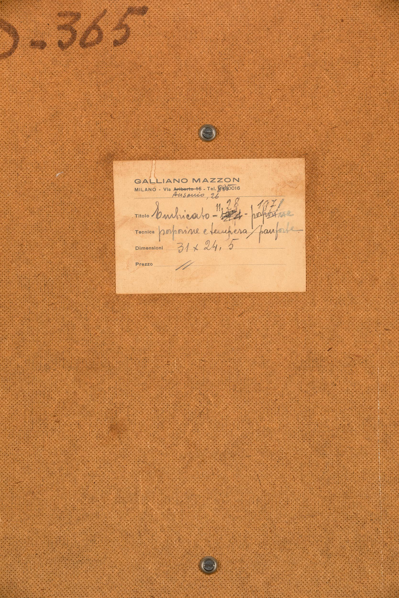 Galliano Mazzon Embicato-11.28, 1971 porporina e tempera su panforte cm...