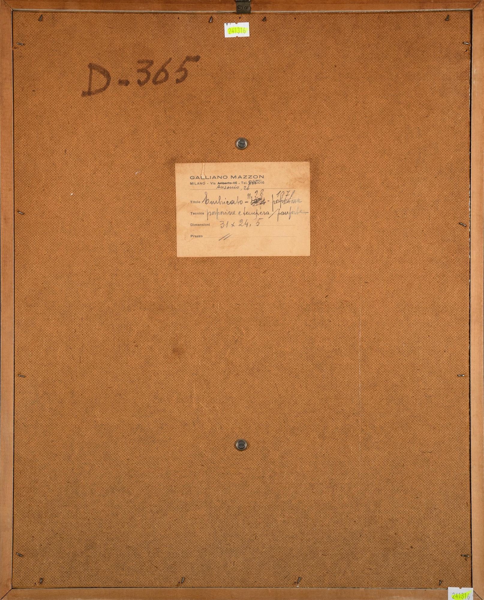 Etichetta al retro dell’artista