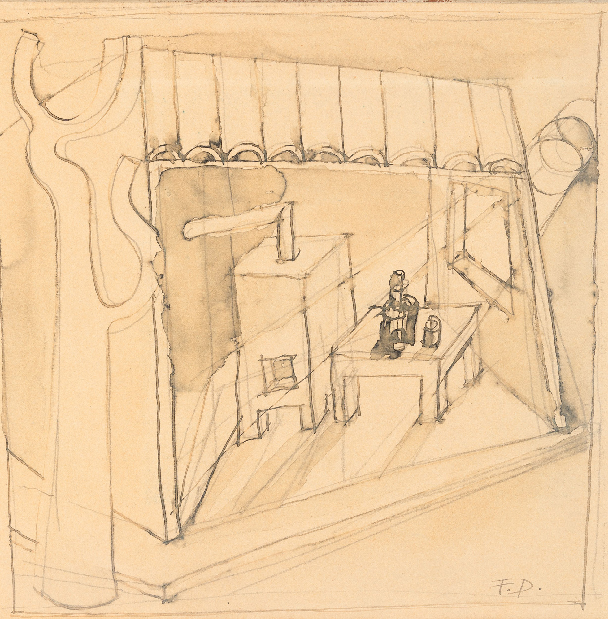 Fortunato Depero Prismi lunari, 1944 ca china e china diluita su carta cm...