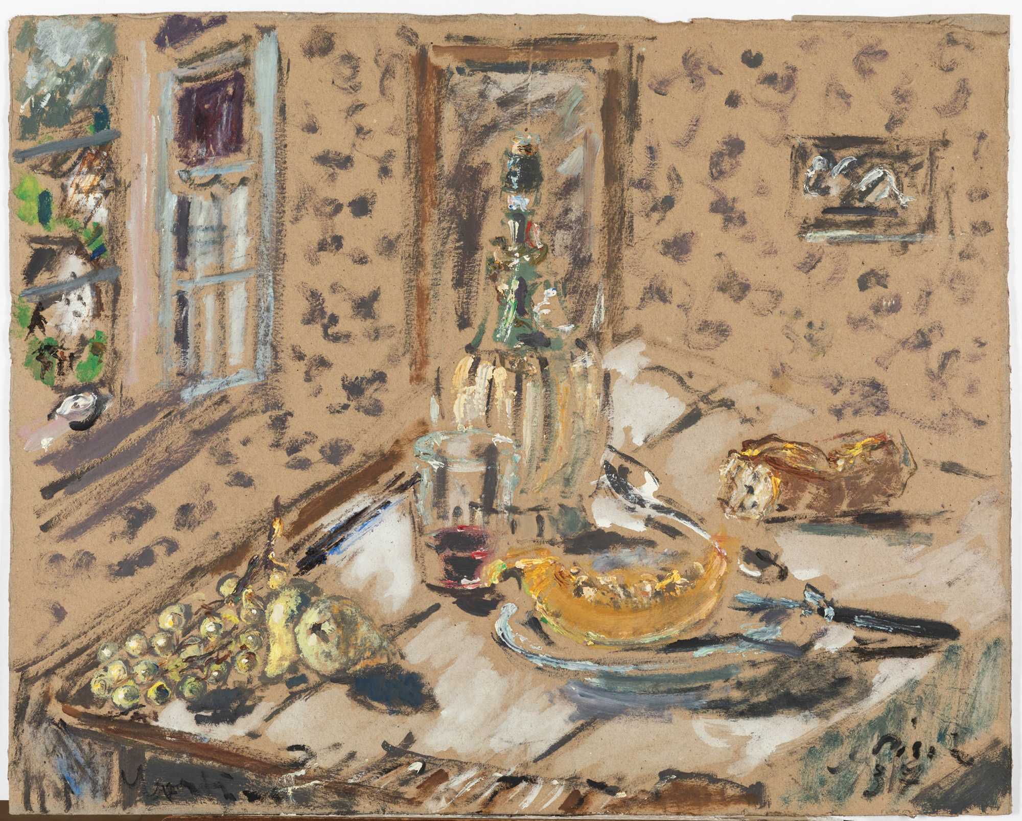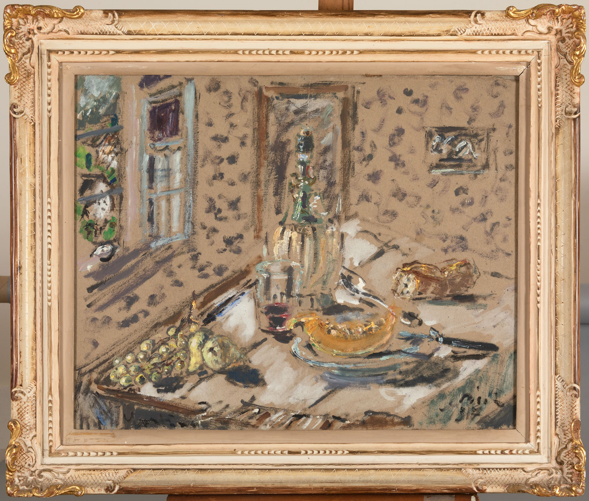 Filippo De Pisis Natura morta con il fiasco, 1937 olio su cartone cm 73x58...