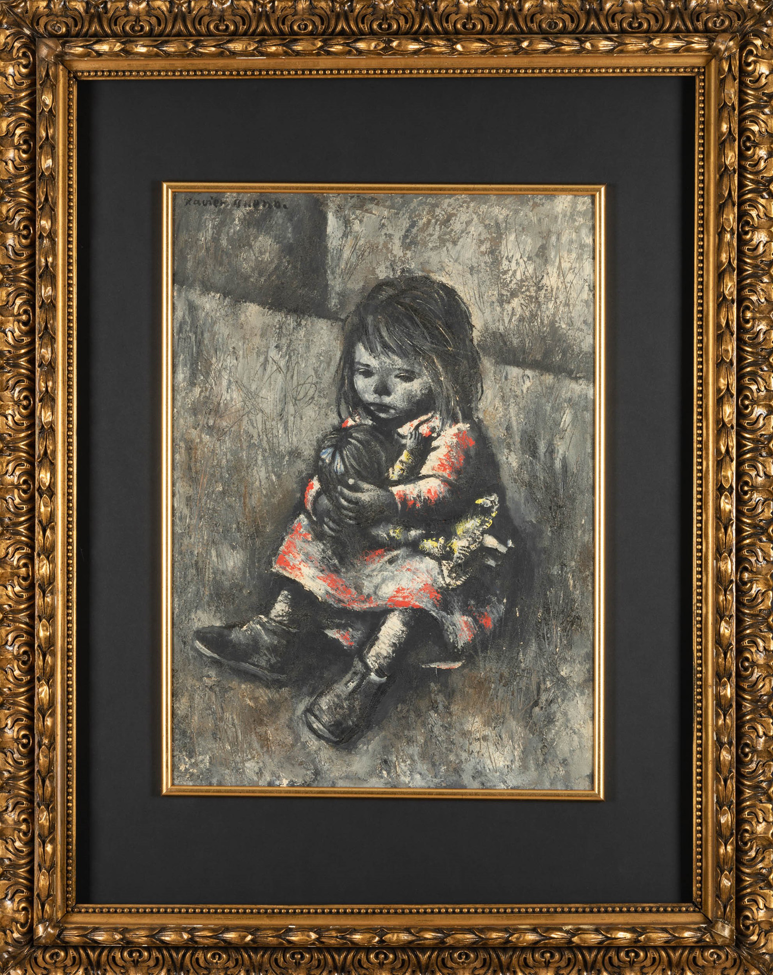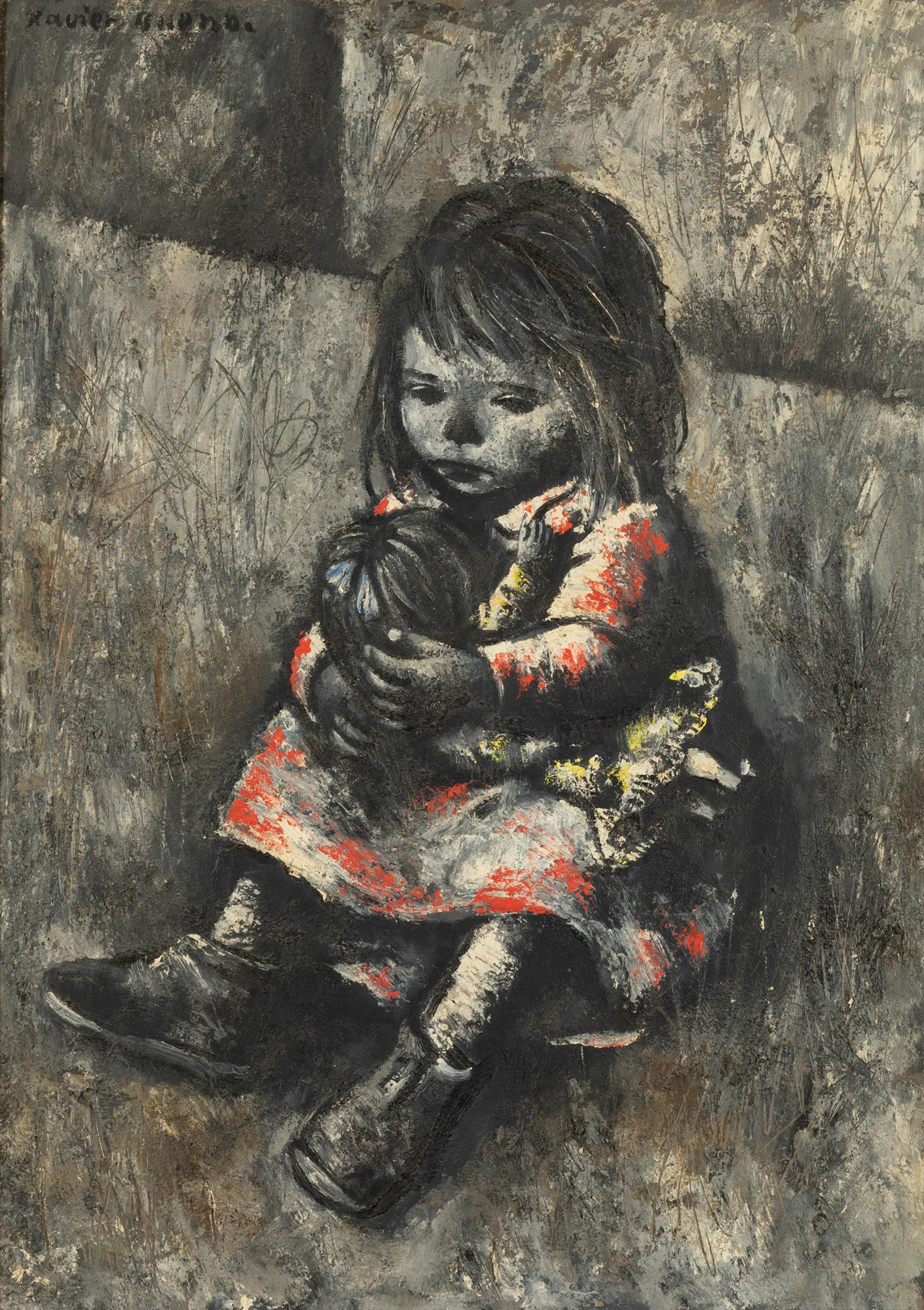 Xavier Bueno Bambina con bambola, 1965 olio e tecnica mista su tavola cm...