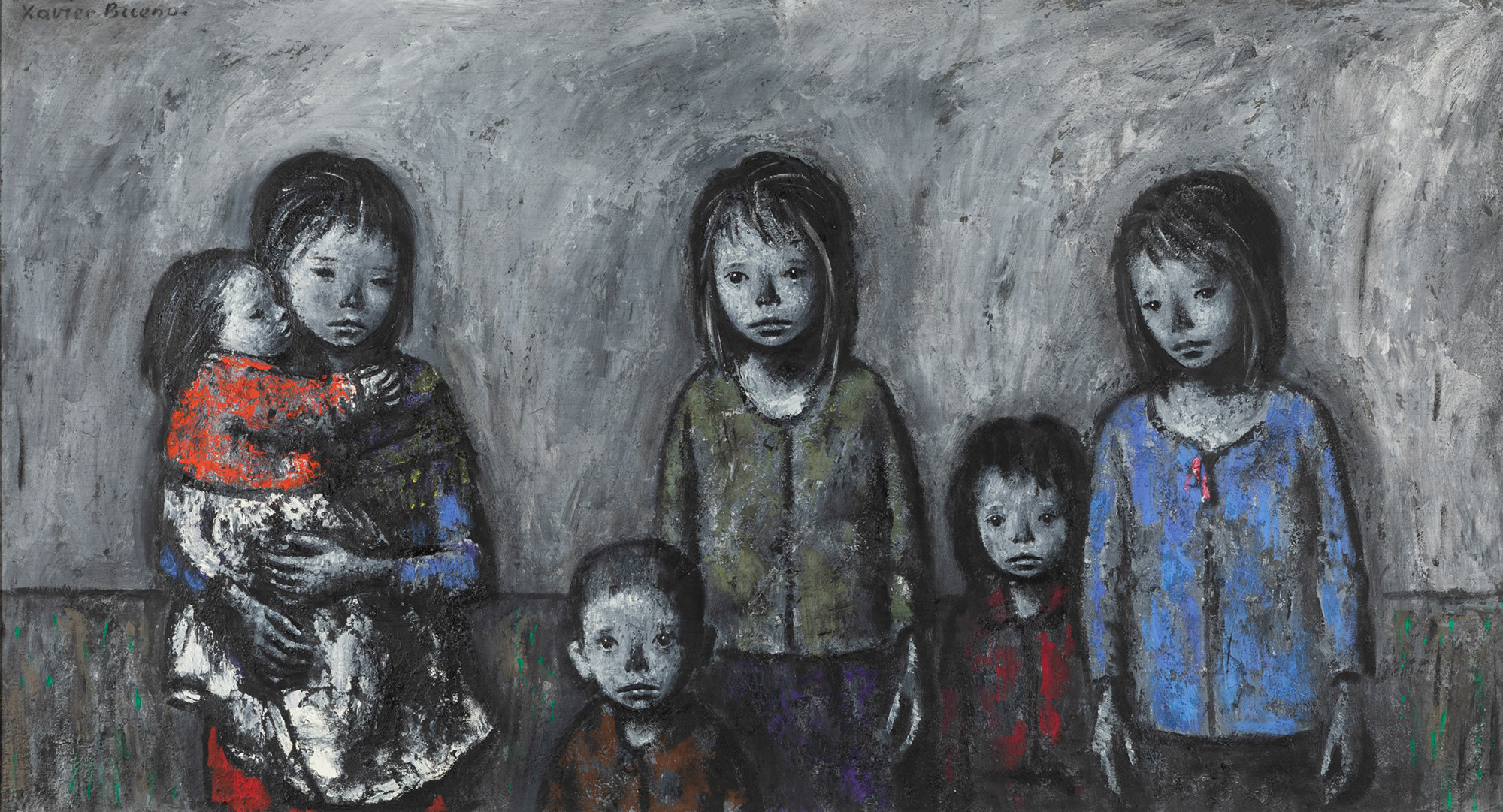 Xavier Bueno Bambini, 1960 ca olio e tecnica mista su tavola cm 121x66...