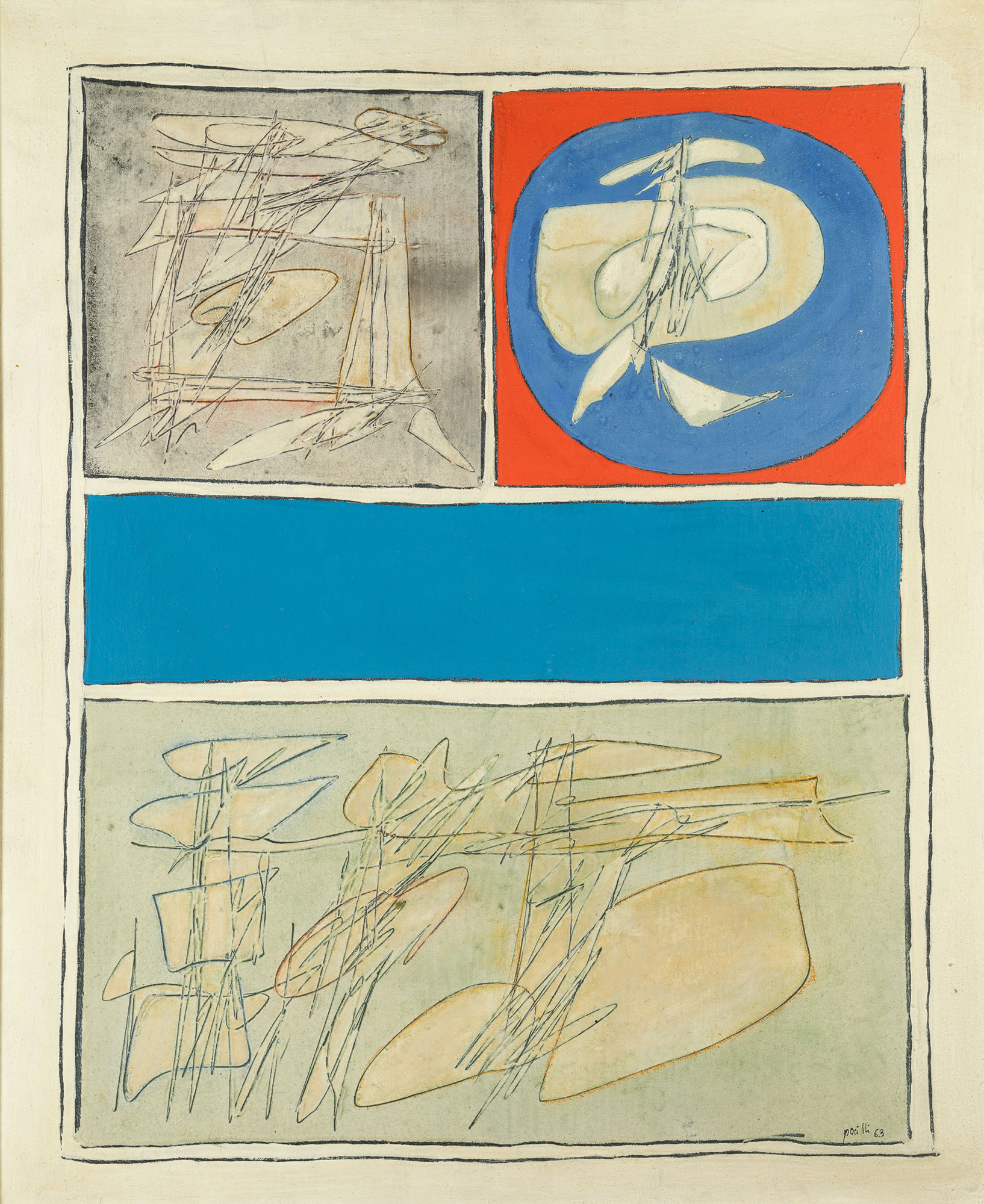 Achille Perilli Bis Azzurro, 1963 tecnica mista su tela cm 60x73,5 firmato e...