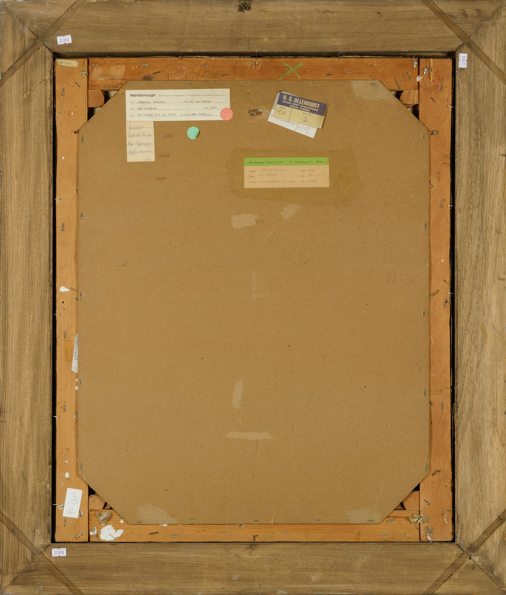 Etichetta al retro della Galleria d’Arte Marlorough, Roma