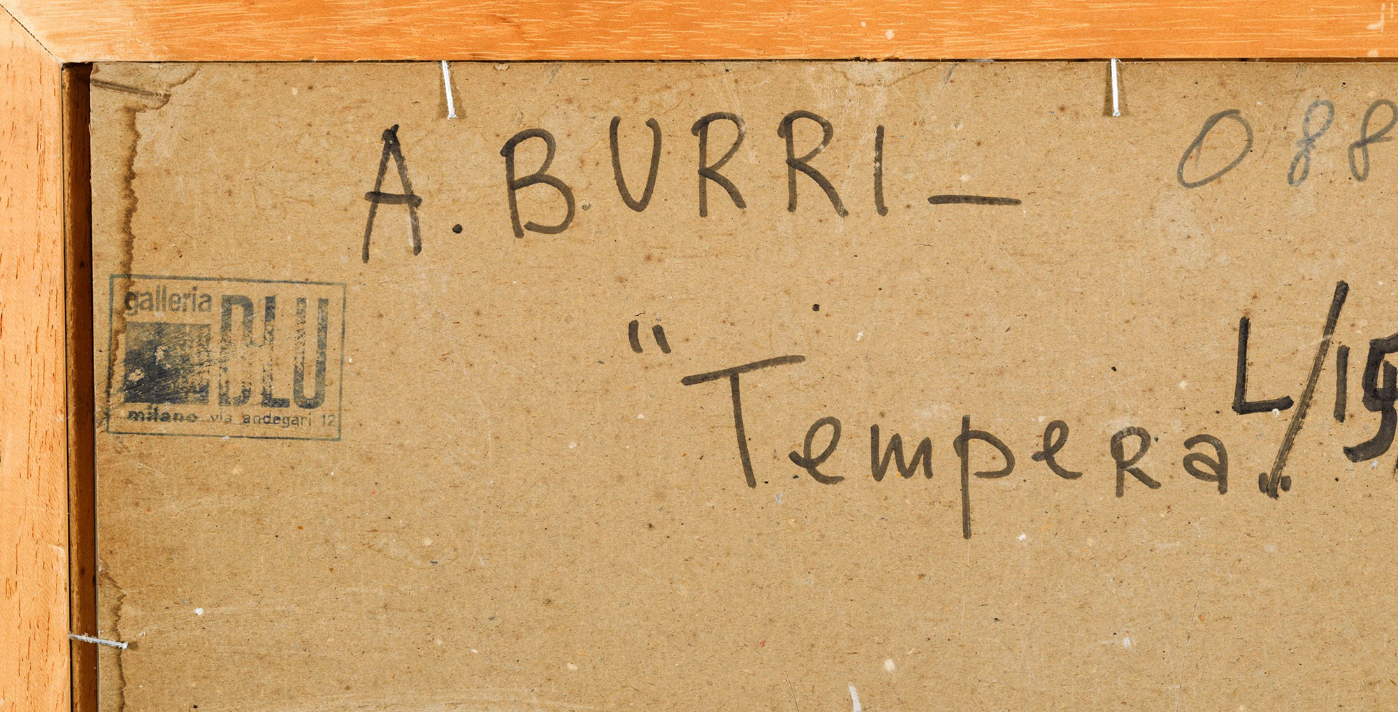 Alberto Burri Tempera, 1953 tempera su carta cm 22x13,8 firmato e datato in...