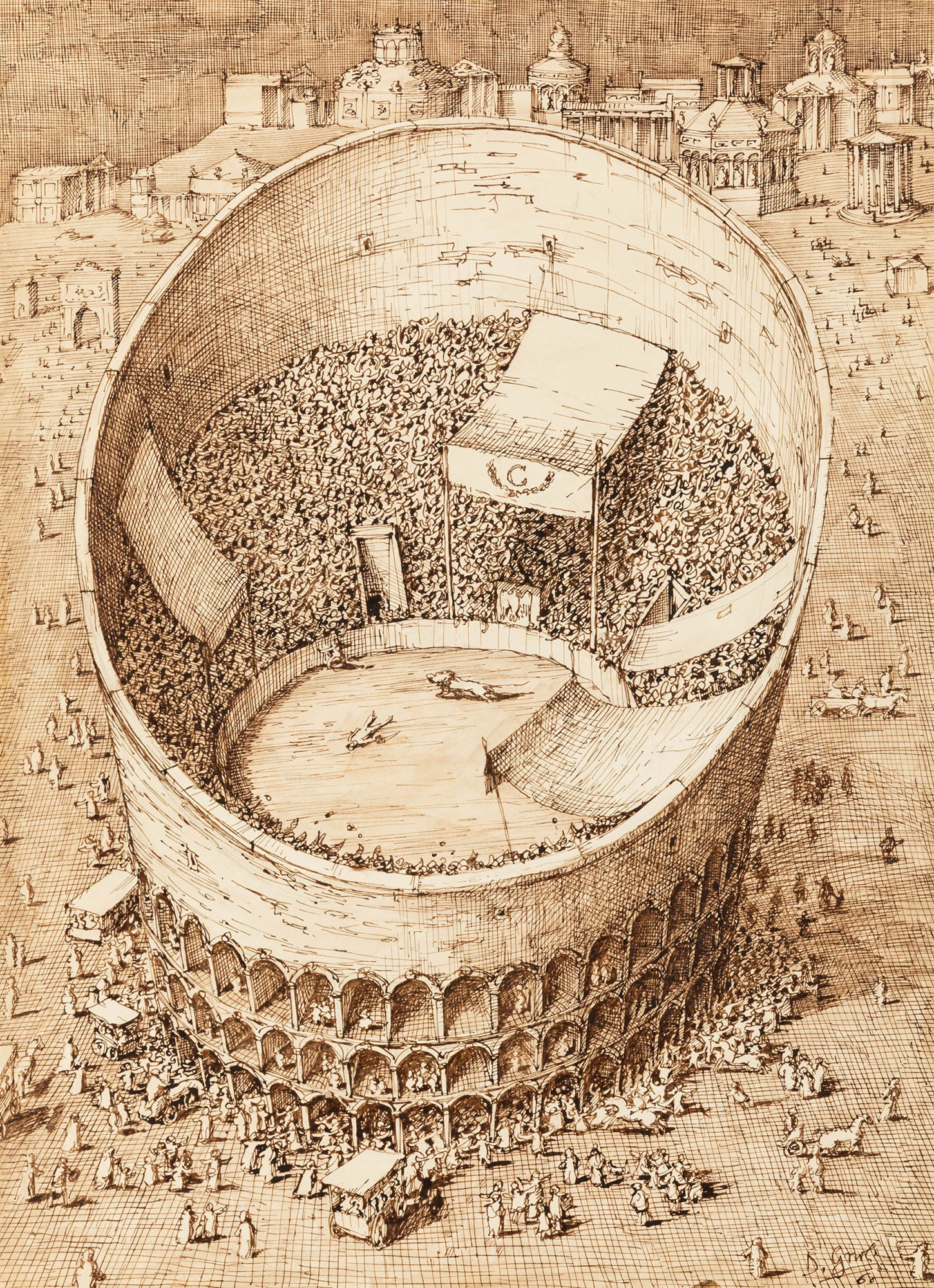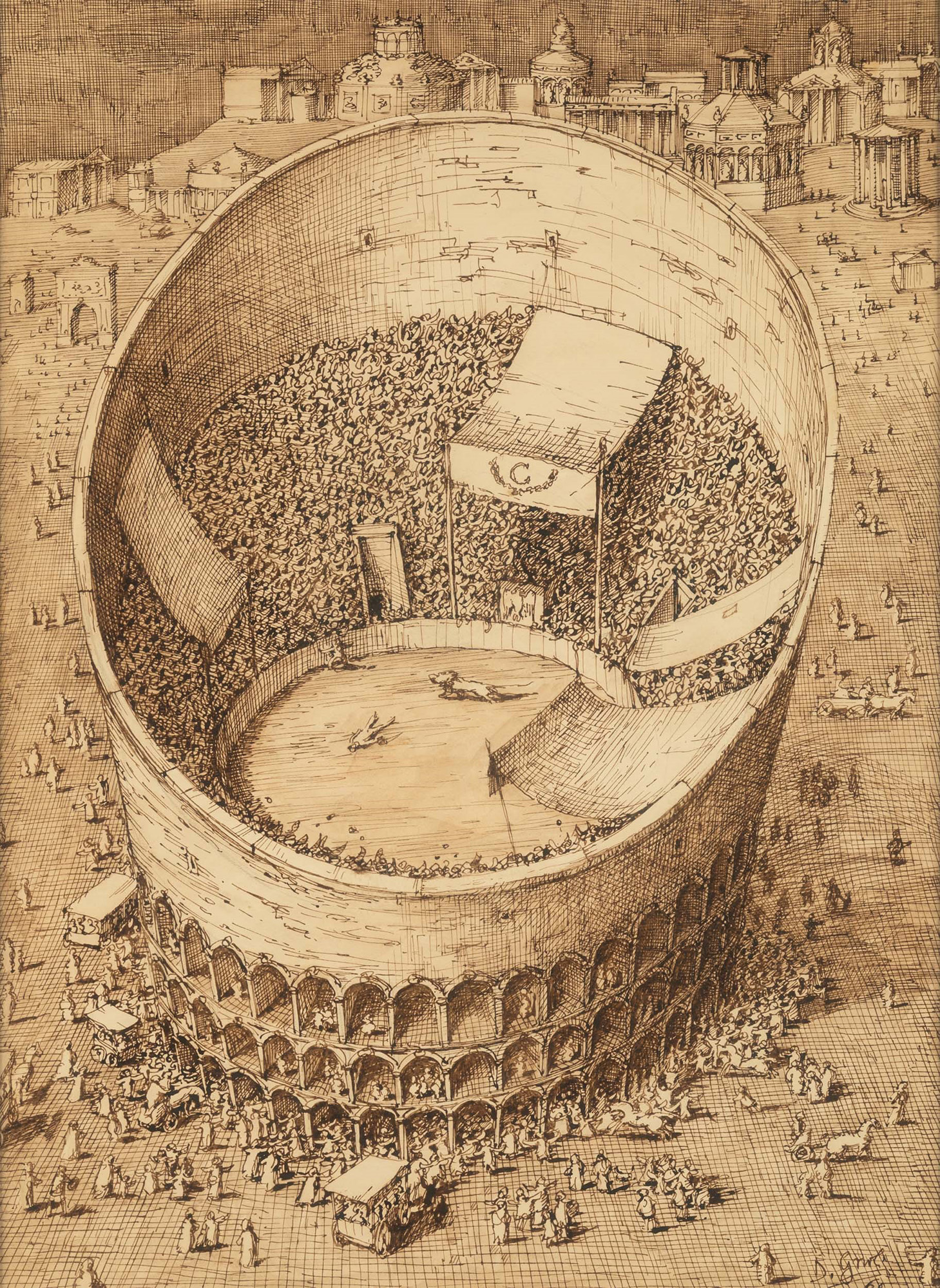 Lot 175 | Domenico Gnoli I gladiatori, 1960 inchiostro su carta cm 41,9x57,4 Etichetta...
